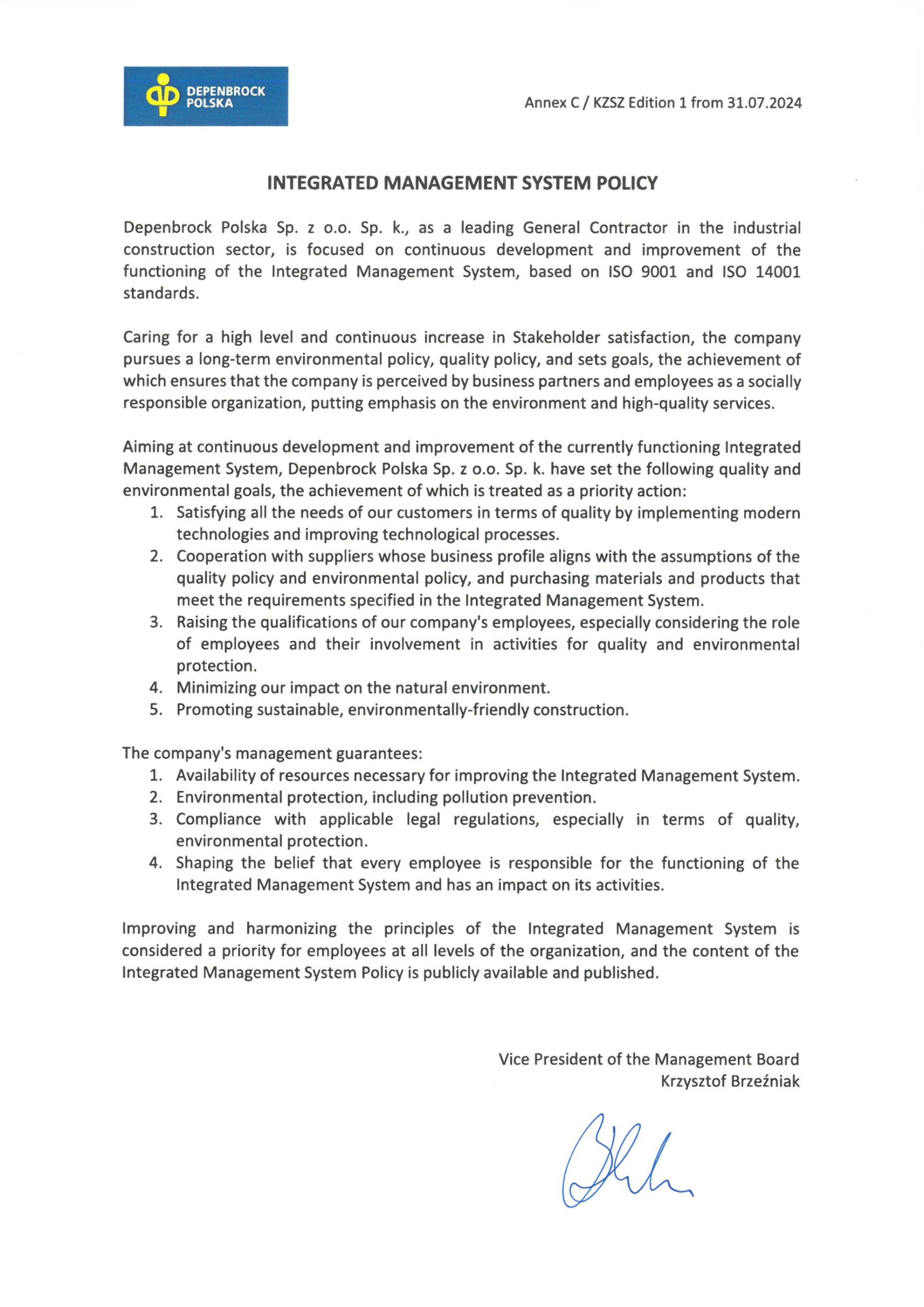 At Depenbrock Polska, sustainable development is not a trend – it is the foundation of our operations. At every stage of an investment project, we strive to minimise environmental impact, use resources efficiently and act in a socially responsible manner. We apply modern construction technologies, promote energy-efficient solutions and have implemented international certification systems such as BREEAM and LEED.